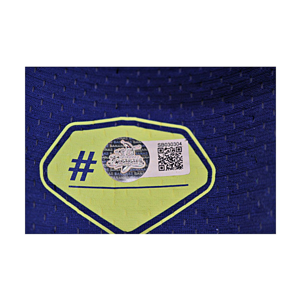The items includes a Savannah Bananas QR coded numbered hologram. Authentication can be verified by its numbered hologram at CollectibleXchange.com or by scanning the QR code.