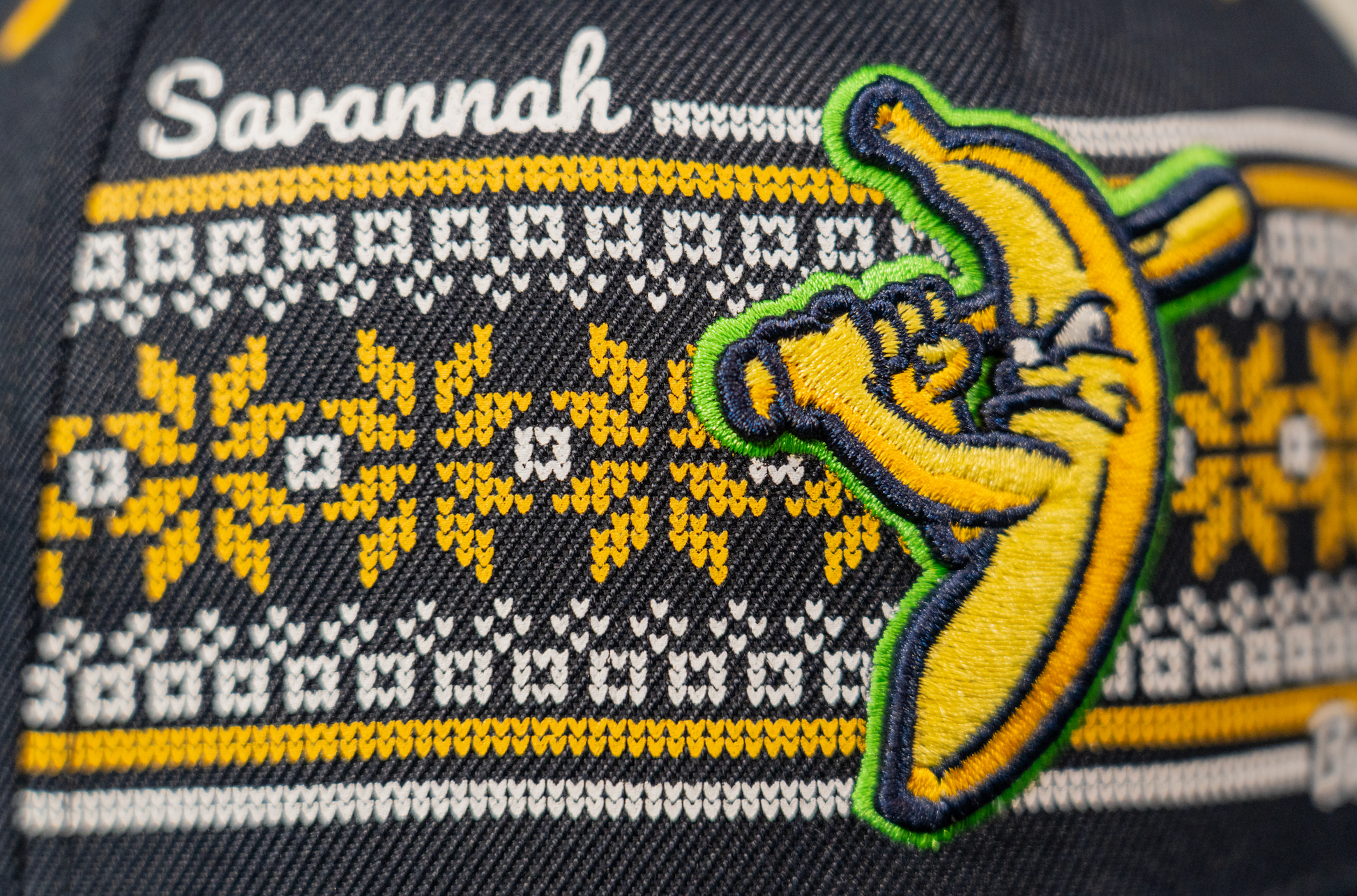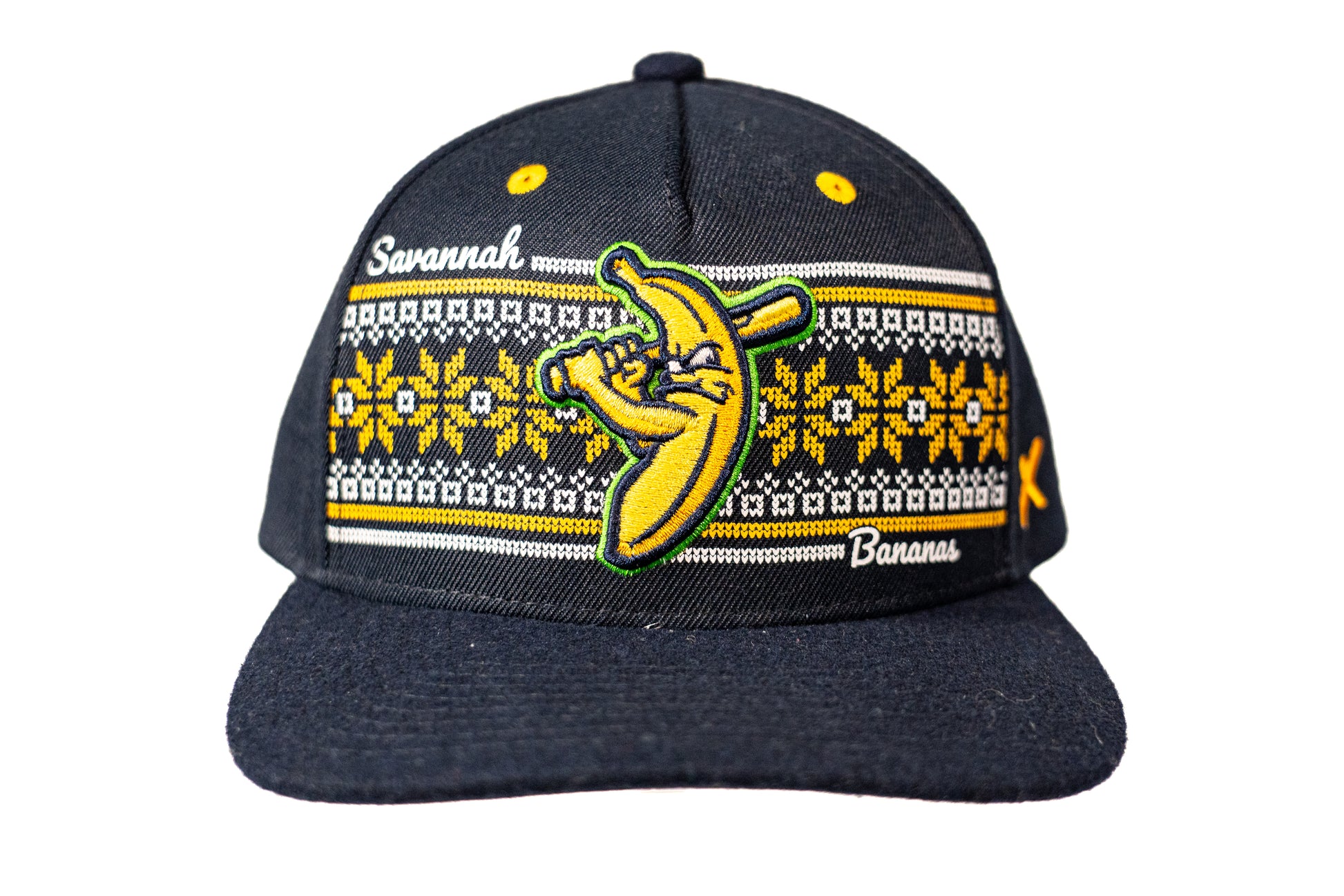 The Savannah Bananas CapX Yule Adjustable Hat brings holiday style with a playful twist. Designed to look like a Christmas sweater, it’s festive, comfortable, and perfect for showing your Bananas spirit this holiday season!