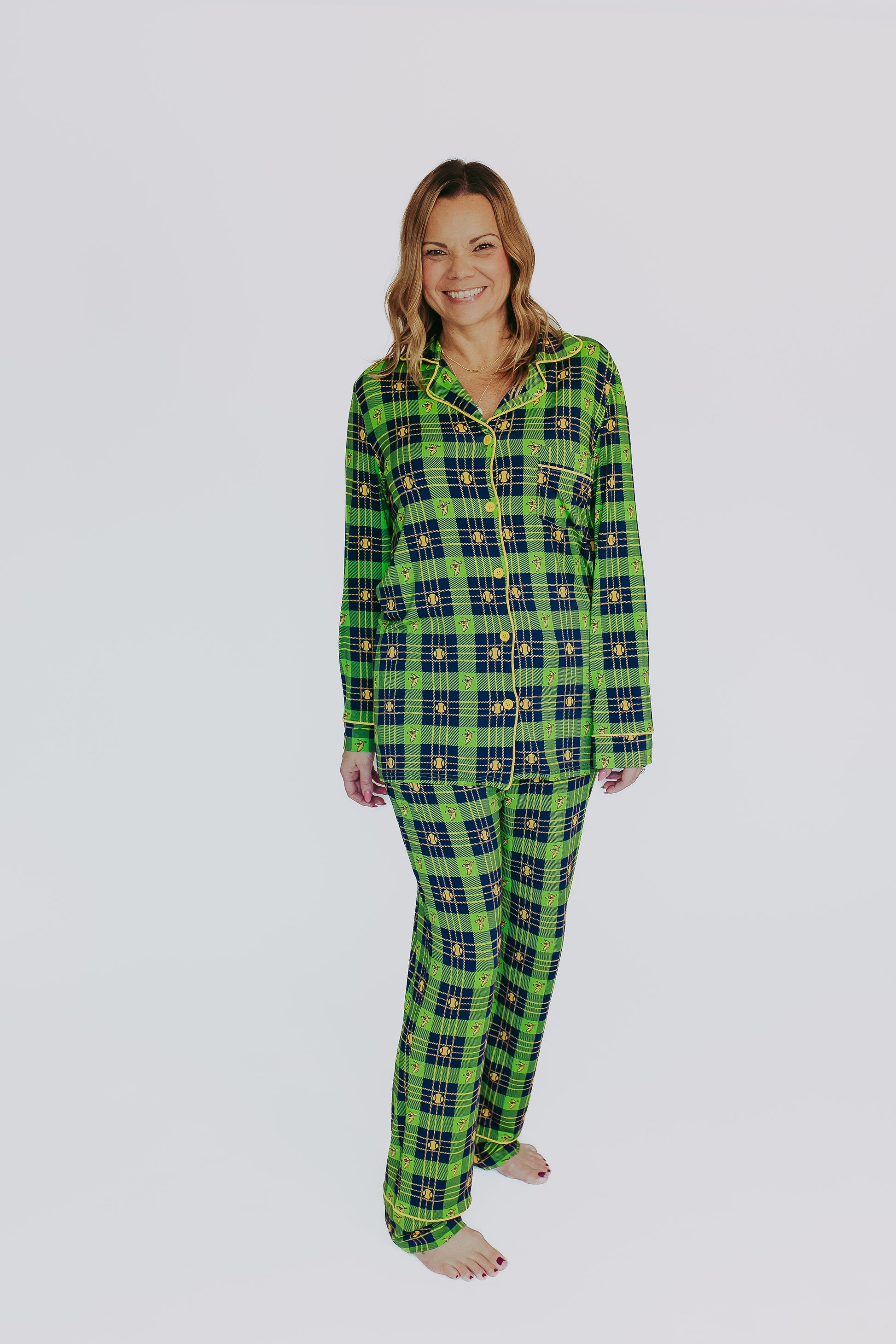 Bananas Long Sleeve Button Down Pajama Shirt - Green Tartan
