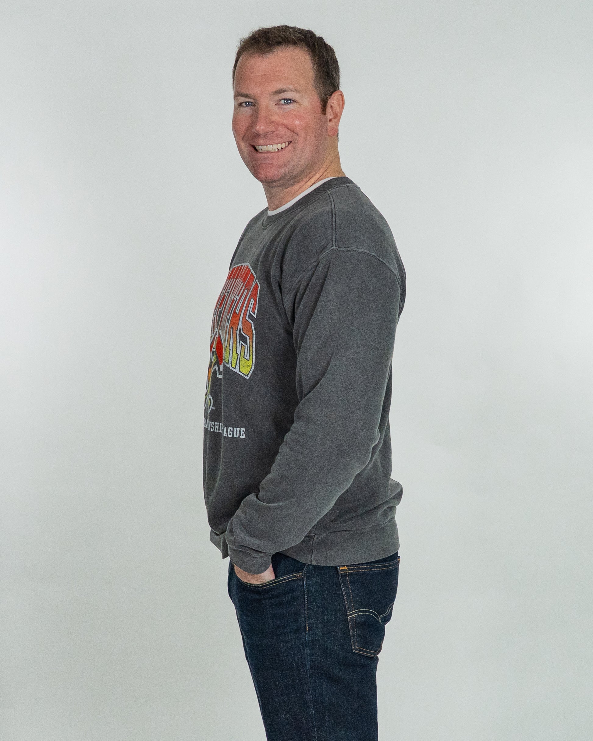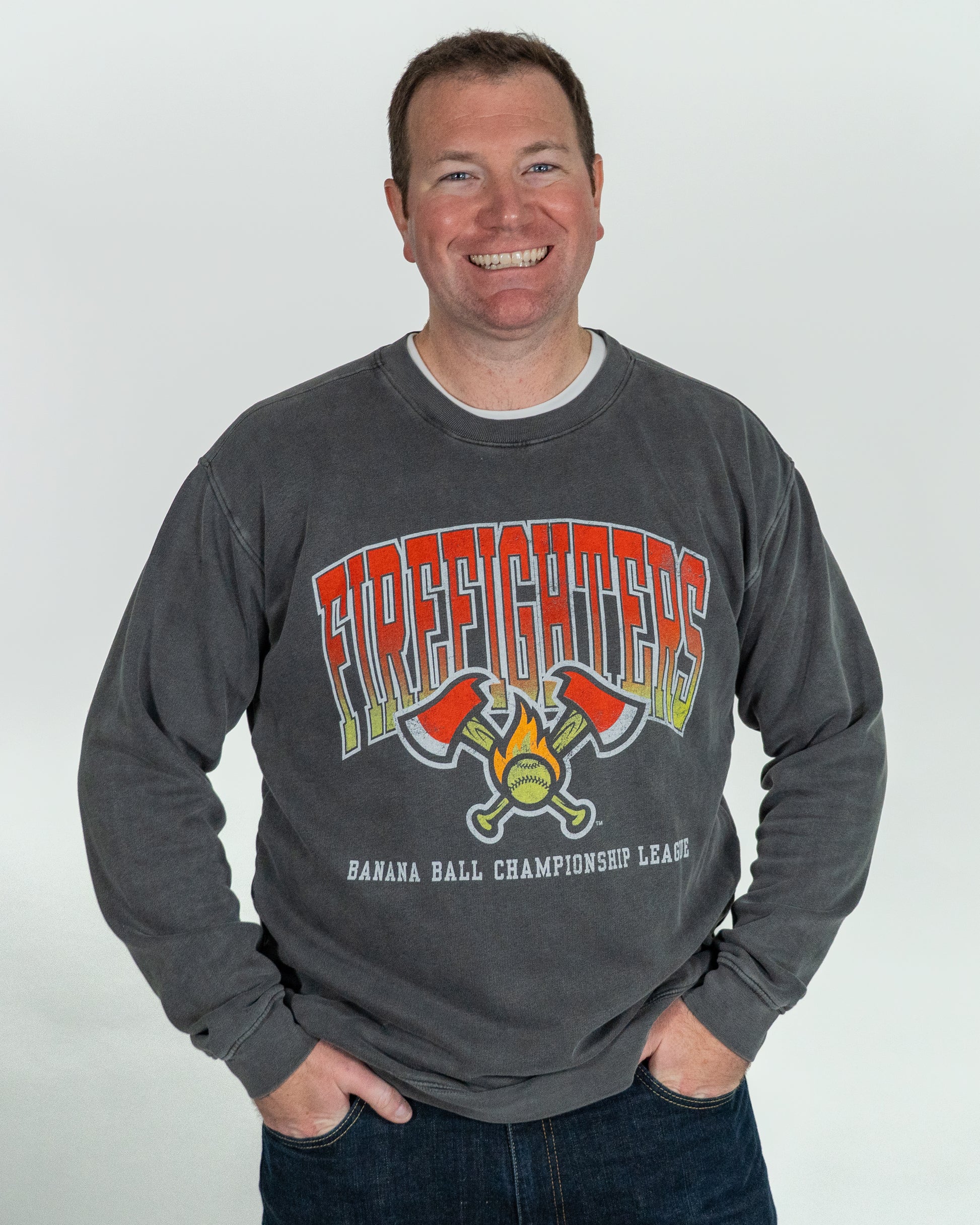 Heat up your holiday wardrobe with this cozy crewneck! From game days to holiday hangs, the Firefighters Blue84 Kicking It Crew brings the heat!