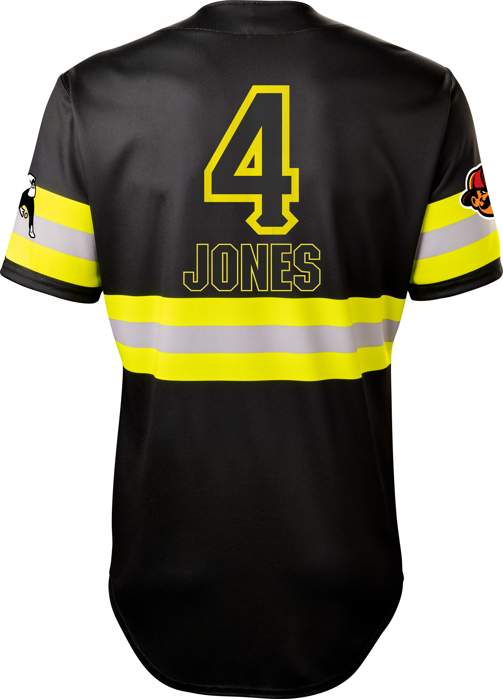 Suit up in the official Eric Jones Jr. Firefighters' jersey, marking his shift from yellow to red as he takes over behind the plate.