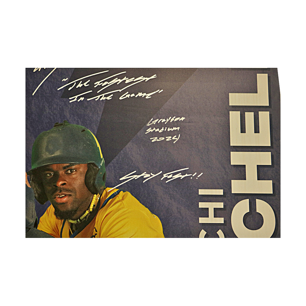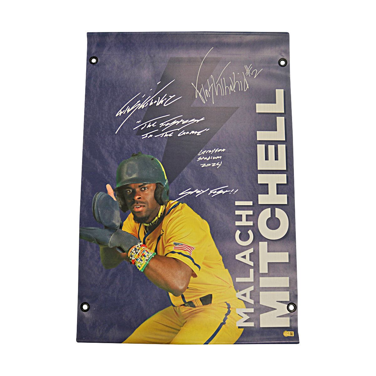 Malachi Mitchell Autographed Inscribed Savannah Bananas 2024 Grayson Stadium 24"x35" Vinyl Banner
