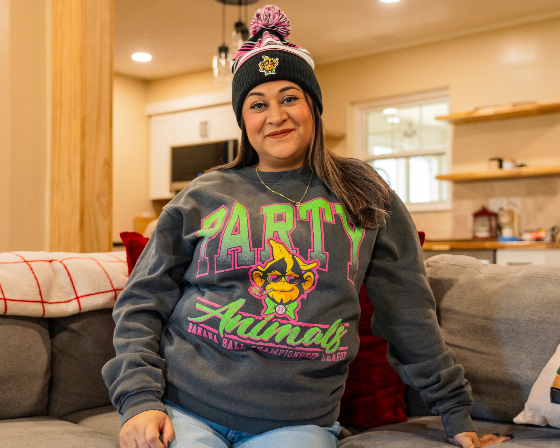 Keep warm and stay wild with the Party Animals Blue84 Kicking It Crew! Rep the boys in black & pink at all your holiday parties this season!