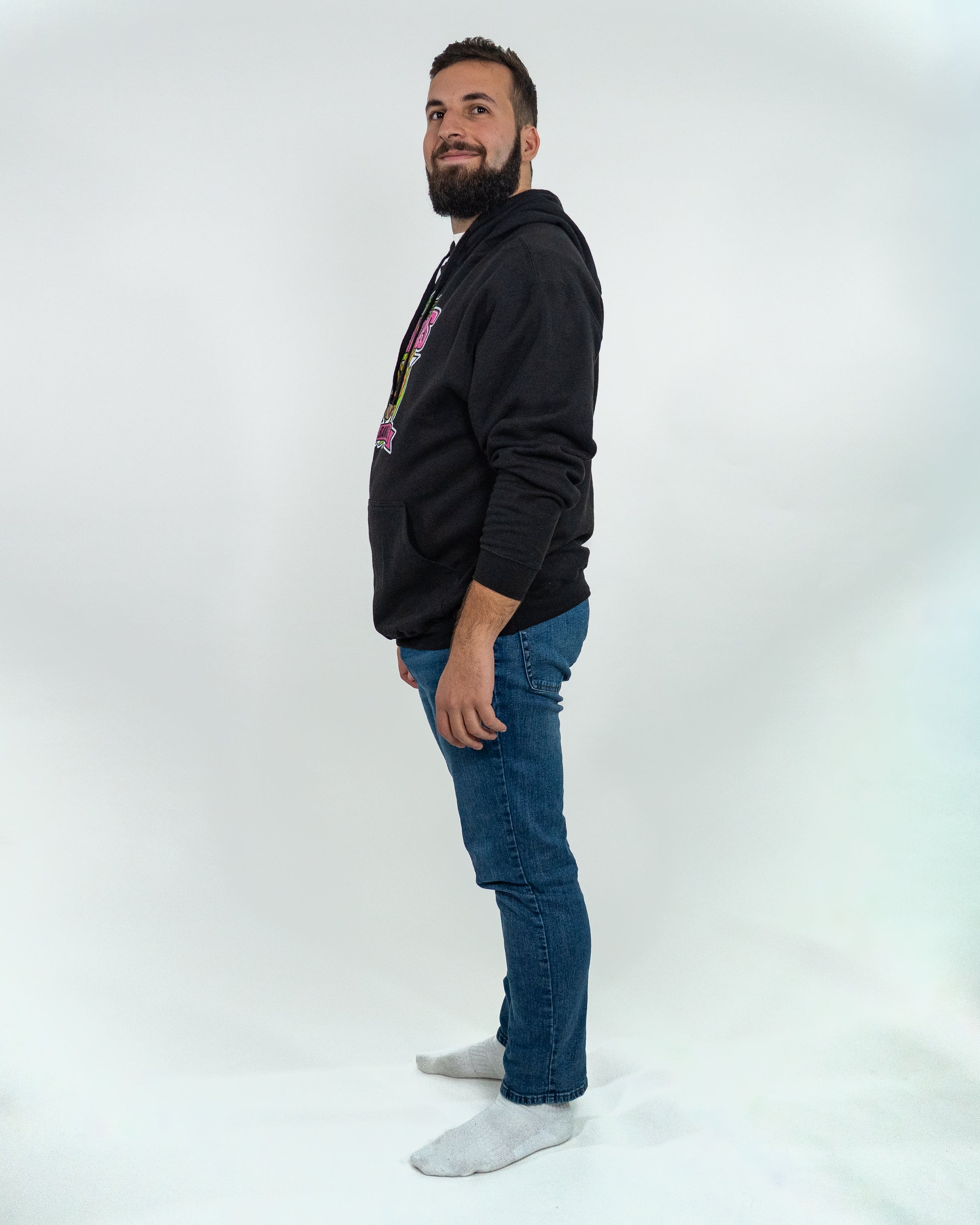 Cozy up in style with the Party Animals Classic Badge Hoodie! This hoodie is your go-to for game days, chill nights, or anywhere you want to rep the boys in black & pink in comfort!