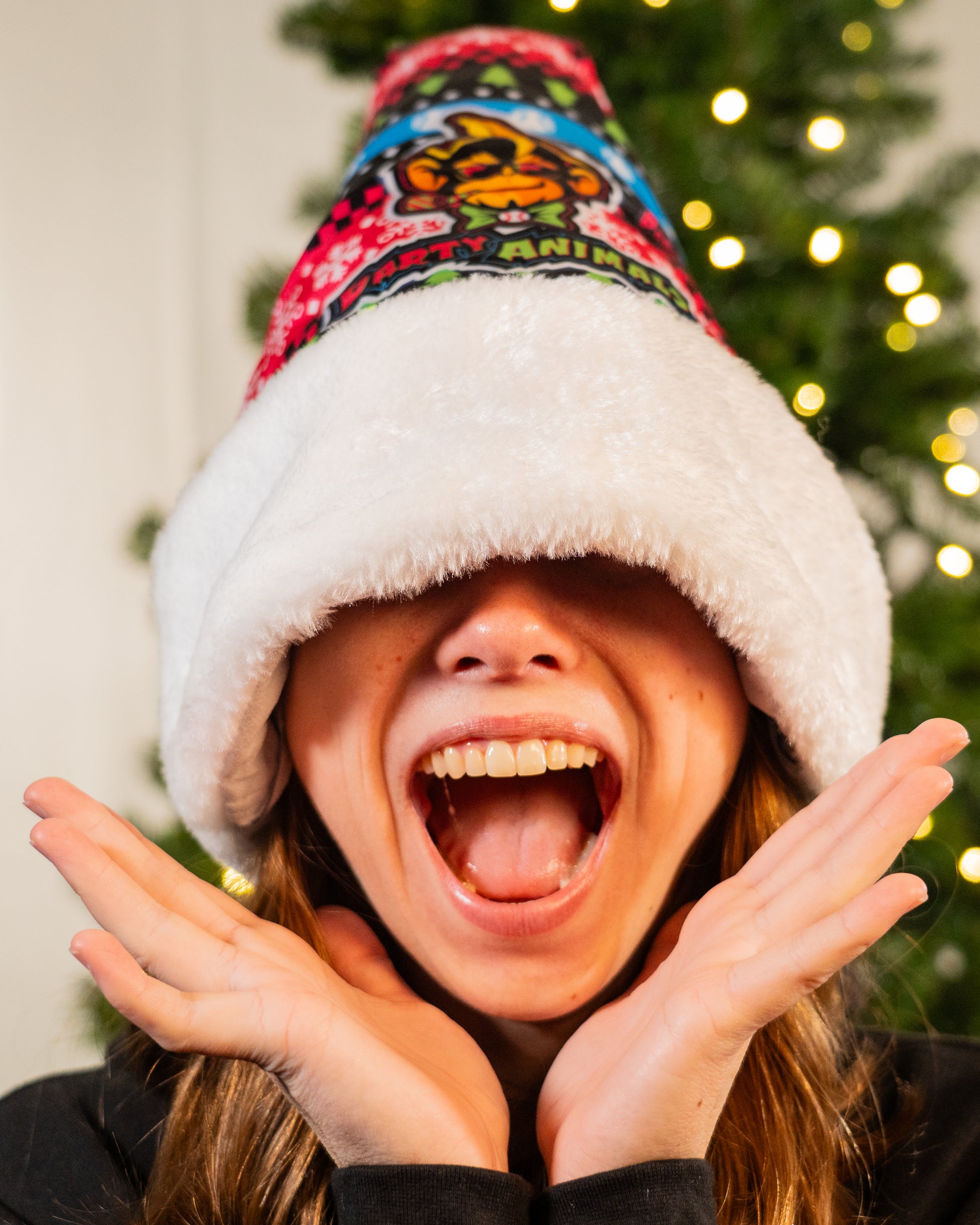 Bring the party to your holiday season! This Party Animals Santa Hat is ready to rock all season long!