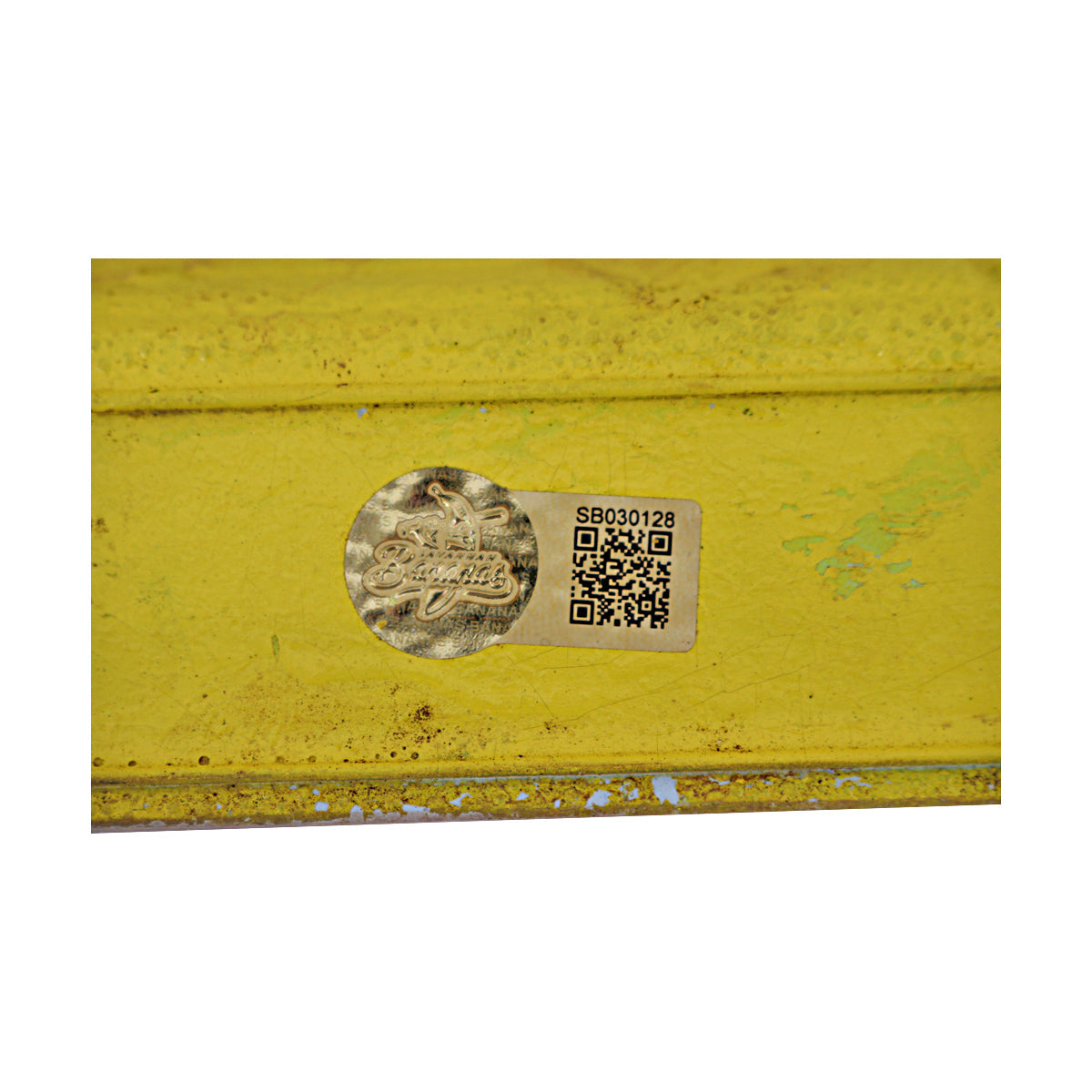 This base was used in the Savannah Bananas vs Firefighters game on May 24, 2025, at Kauffman Stadium. Item includes a Savannah Bananas QR coded numbered hologram. Authentication can be verified by its numbered hologram at CollectibleXchange.com or by scanning the QR code.